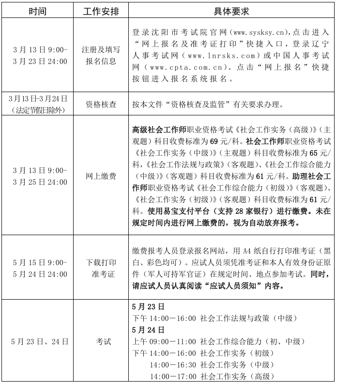 根据辽宁省人事考试中心《关于做好2026年度社会工作者职业资格考试考务工作的通知》(辽人考函〔2026〕8号)精神,为做好2026年度社会工作者职业资格考试沈阳考区报名工作,现将有关事项通知如下: