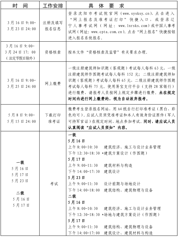 根据辽宁省人事考试中心《关于做好2026年度全国一、二级注册建筑师资格考试考务工作的通知》(辽人考函〔2026〕9号)精神,为做好2026年度一、二级注册建筑师资格考试沈阳考区报名工作,现将有关事项通知如下: