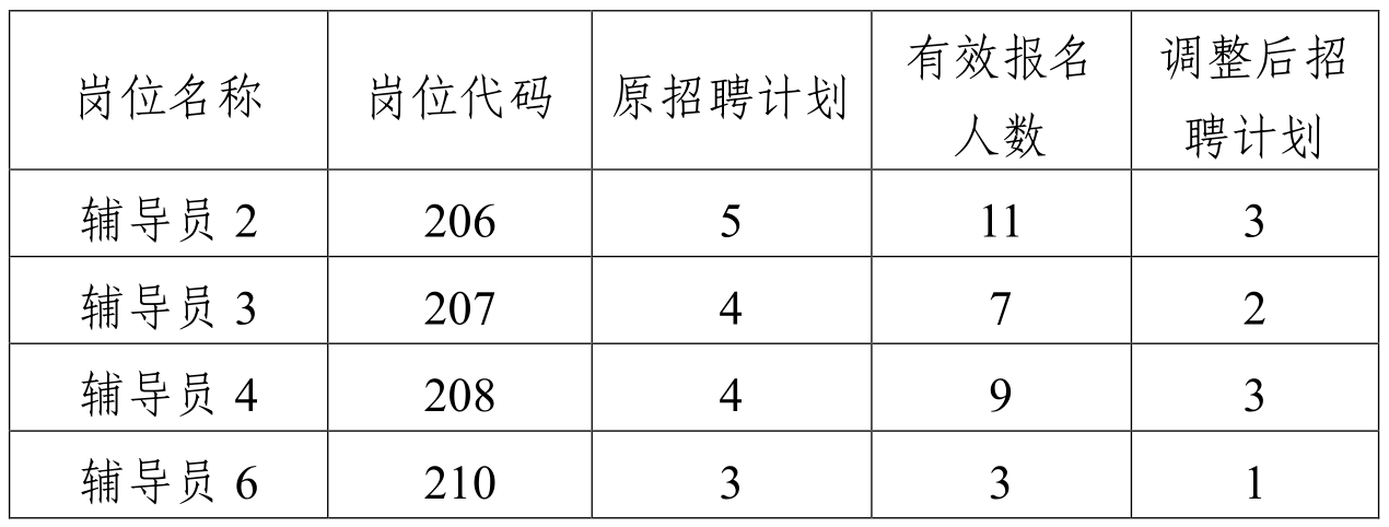 按照《2021年沈阳职业技术学院公开招聘思政教师和辅导员公告》要求,现将因有效报名人数与岗位招聘计划达不到3:1而削减招聘计划的岗位予以公布: