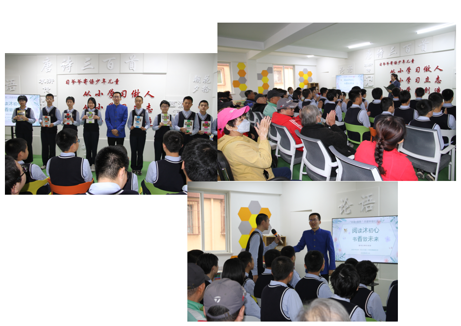 读书分享会后,孙刚老师和市考试院、玖伍文化城干部职工代表共同走进共建社区——大东区万泉街道魁星社区,为社区青少年和居民开展公益名著导读活动,发放经典书籍,助力践行“两邻”理念,打造书香社区、幸福社区。